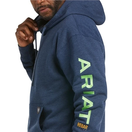 Ariat Mens Rebar Graphic Hoodie combines warm, comfortable fabric with mobility-focused design and water-repellent performance. This is an easy-wear, hard-working hoodie.