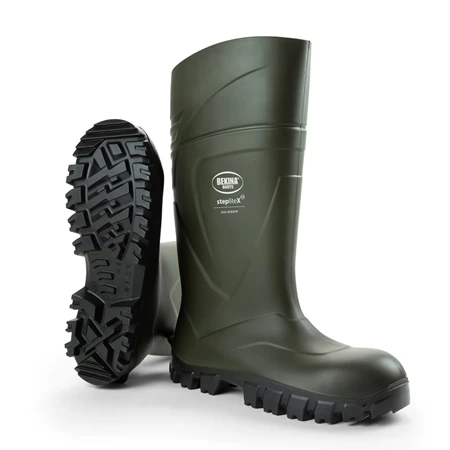 The Bekina Boots StepliteX Solid Grip Steel are a hard wearing work boot specially developed for the agricultural sector. It offers excellent grip on the most slippery surfaces (SRC approved) and insulates to -30°C. Every pair of boots comes with a moisture absorbing ergonomic footbed, so your feet will always stay dry.The Bekina Boots StepliteX Solid Grip Steel have a steel toe for maximum protection while working.