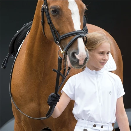 The Equetech Kids Live Love Ride Competition Shirt offers style and comfort for the younger competitor.