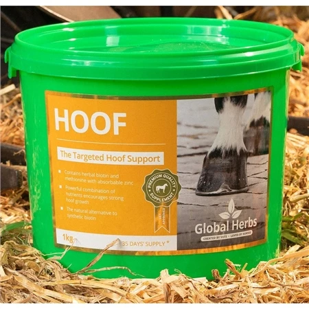 Global Herbs Hoof contains a naturally occurring, plant-based biotin which is known to help maintain healthy hooves. This unique formula provides excellent hoof nutrition and aids new horn growth. Hoof can be used to help maintain and support of hoof condition. Hoof can be used all year round for ongoing support. Suitable for all horses and ponies.