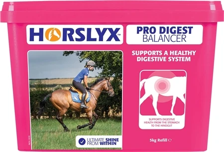 Horslyx Pro-Digest Stable Lick contains a combination of ingredients that support the health of the digestive system. Ingredients such as Slippery Elm and Seaweed meal are also a source of mucilage (also known as soluble fibre), while a prebiotic further supports gut bacteria whose existence in the hind gut is beneficial to overall health. A live probiotic, as well as the licking from the horse which stimulates saliva, acts as a buffer within the stomach and therefore reduces the effects of excess acid.