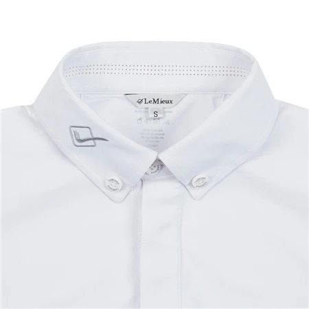 The LeMieux Monsieur Mens Competition Shirt offers high performance through and through. Made from a luxurious, technical base material that moves as you move, it effectively regulates heat and moisture through strategically placed laser cut vents under the arm and around the collar for maximum air flow. The bonded seams reduce friction against the skin making it ultra comfortable and streamlined.