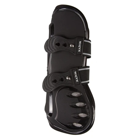 The Majyk Equipe Boyd Martin Tendon Jump Boots is the perfect competition boot, offering top-notch features. It has a BASF TPU flexible outer shell, with a vented design to cool your horse’s leg, and dual-density strike guard protection. The inner strike guard has ARTi-LAGE, a proprietary dilatant material found only in Majyk Equipe Boots. This boot also features a neoprene-free bio-foam liner, which helps prevent heat buildup and odors. Snap closures and gunmetal studs provide secure fastening, and two sizes of strap lengths are available to accommodate finer-boned or thicker-boned horses.