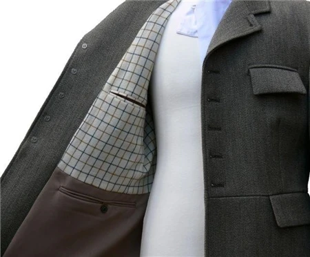 - The body is lined in an all wool tattersall check fabric which incorporates two in breast pockets.
