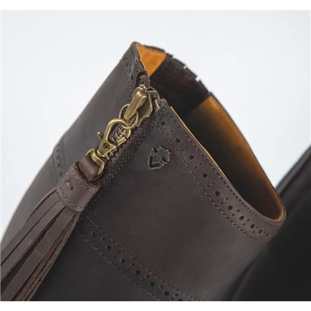 The Moretta Alessandra Country Boots combine style and practicality! Oiled leather is gracefully sculpted to hug the leg and taper at the ankle, the upper edge is curved to flatter the leg and the tassels add movement and interest. The stirrup safe sole has sufficient grip to provide reliable grip in all weathers.