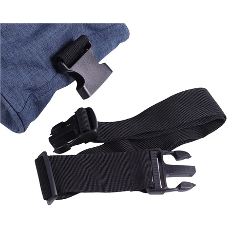 The QHP Boot Bag is equipped with a grip on top and a removable, adjustable shoulder strap on the front. The bag has a dividing wall on the inside and both sides have a zipper. The bag has a mesh insert for ventilation.