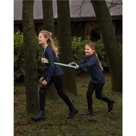 The QHP Horse Toy Harness is a funny toy harness to play horse with friends. One child wears the harness, while the other walks behind it and holds the reins. Nice toy for the smallest horse lovers!