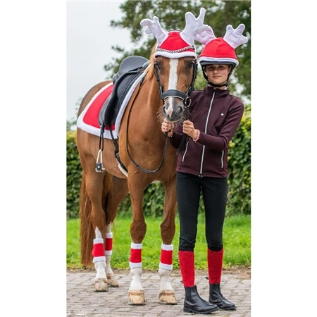 The QHP Reindeer Hat Cover can be worn over a safety hat. Featuring reindeer antlers and a white trim, the QHP Reindeer Hat Cover is the perfect funny hat accessory for the festive period.
