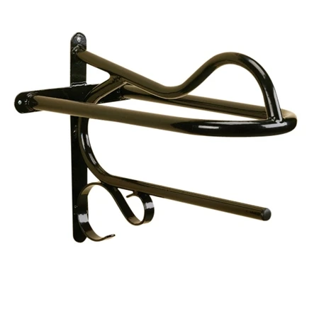 The Stubbs Western Saddle Rack comfortably carries a western saddle, with pad below.