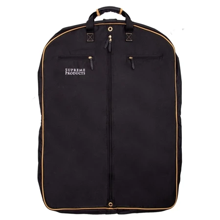 The Supreme Products Pro Groom Children’s Garment Bag is perfect to keep your show jacket, shirt and tie in competition ready condition. Featuring two handy external pockets that are perfect for hairnets, stock pins or any other showing essentials. Finished beautifully with leather and gold detailing, the Supreme Products Pro Groom Children’s Garment Bag will be your new competition essential.