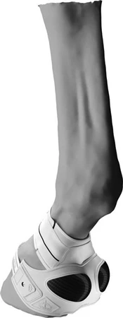 - The anatomically designed protection is in an elastic material that adheres perfectly to the horse’s foot therefore eliminating rotation of the over-reach boot itself.